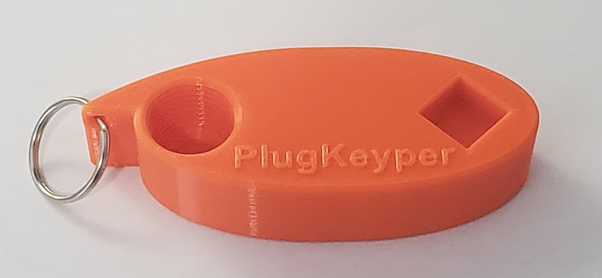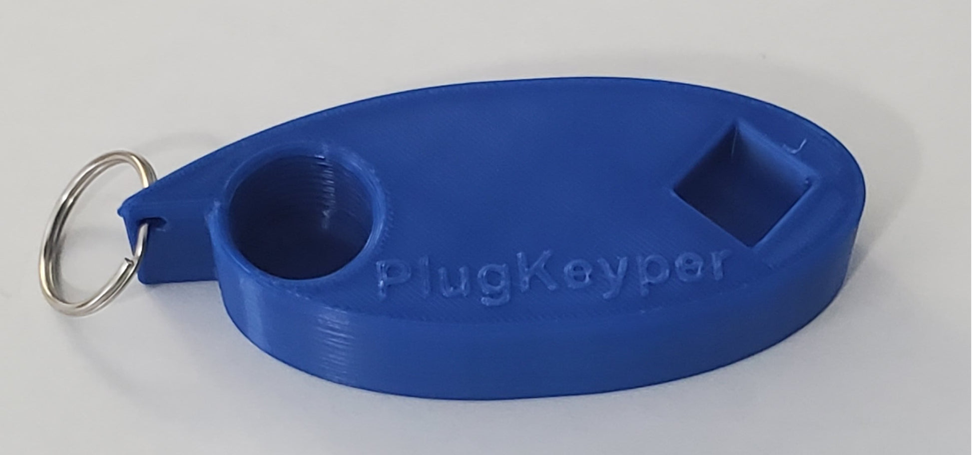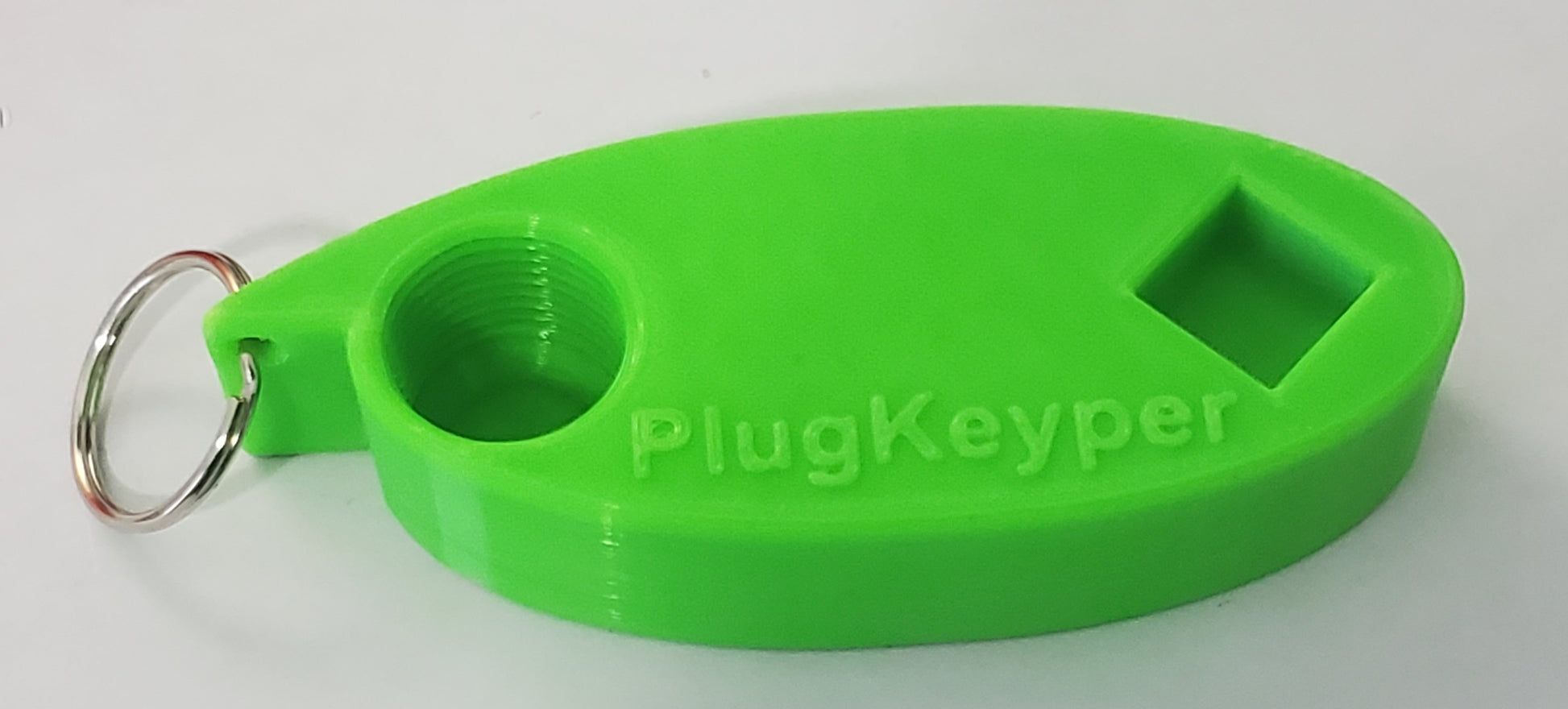 Key float with patented PlugKeyper drain plug reminder and a built in wrench to install and remove your drain plug.